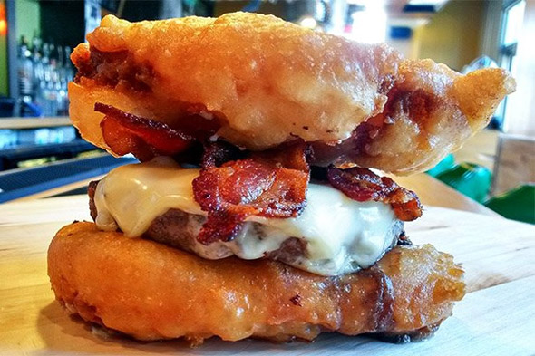Brought to us by PYT in Philadelphia, two cream-filled spongecakes are battered, fried and used as a bun. The burger itself is a 50-50 pork belly and beef patty, topped with bacon and American cheese. So basically, it will kill you on the spot. But hey, Twinkies are back!