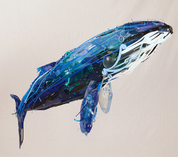 “I only select objects that have been used and discarded. My goal is for each object to transcend its origin by being integrated into an animal/ organic forms that are alive and in motion. This process of reclamation and regeneration is liberating to me as an artist.”