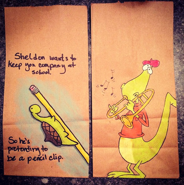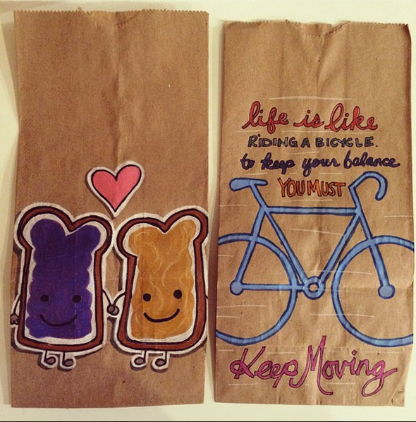 Going to school is hard… especially if you brown bag it every day. Mother of two Christy Kilgore knows this, and makes sure to create a daily work of art on her kids’ lunch bags to help brighten up their day.
