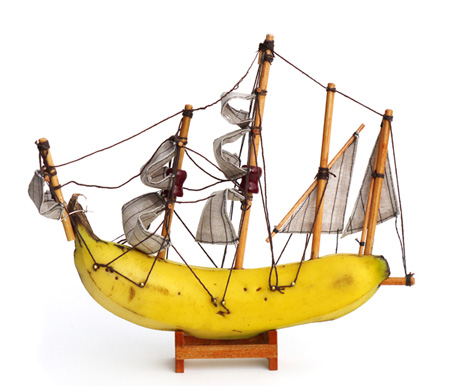 Danish artist Jacob Dahlstrup recently launched a fleet of Banana Boats — naturally using the mixed medium of string and banana.