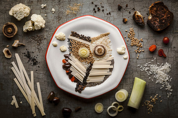A Tribute to Budgie is a creative illustration series by food stylist Anna Keville Joyce. Created with all edible items, Joyce arranges them on plates, with the ingredients close by. Just so you don’t have to ask what’s in your bird food.