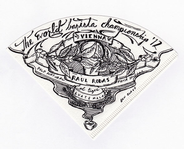 Artist Ben Blake believes that “coffee inspires creativity.” So he uses that theory to celebrate coffee and coffee culture — one filter at a time. Featured on his site, Draw Coffee, Blake uses his mastery of typography and mad doodling skills, to create clever illustrations of almost anything coffee-related.
