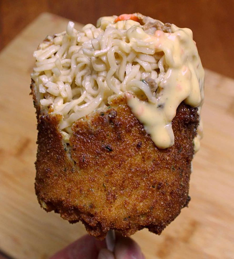 The Vulgar Chef is here with the food-on-a-stick, we never knew we needed — Deep-fried Cup Noodles On A Stick. Thirty-seconds in the microwave, followed by a few minutes in the deep-fryer, and you could be on your way.