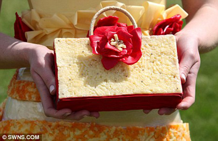 Using Pilgrims Choice Vintage, Extra Mature and Red Leicester cheeses, the dresses were heat molded to fit. And yes, they also had matching shoes, aptly referred to as ‘Jimmy Cheese’.