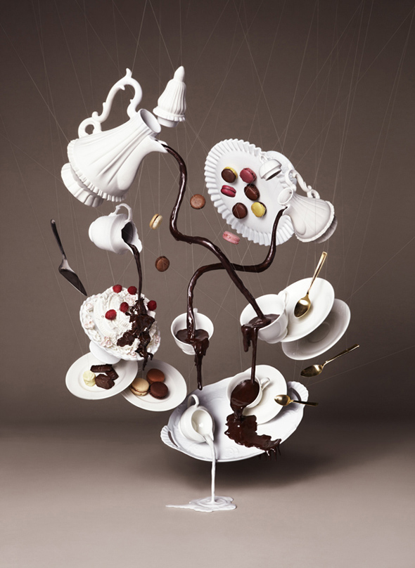Brought to us by Japan-based NAM and AllRightsReserved, is this stunning photo series of falling chocolate. Created to help promote Chocolate Trail 2012, the photos use no digital manipulation to create the falling effect, and proudly shows off their strings. And the making-of video is kinda awesome.