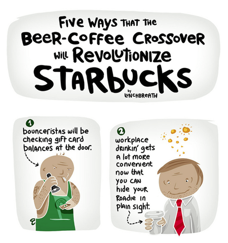 In response to Starbucks’ recent announcement that it will start selling liquor at select stores — Lunchbreath shows us what we can expect as a result of the new drink menu.