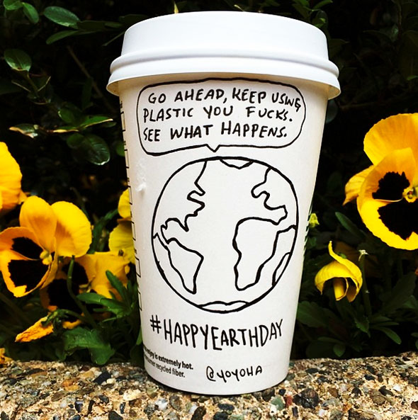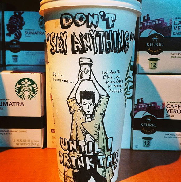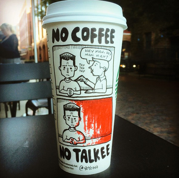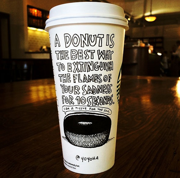 Cartoonist Josh Hara likes Starbucks. He also likes the blank canvas that their coffee cups provide for his comics.