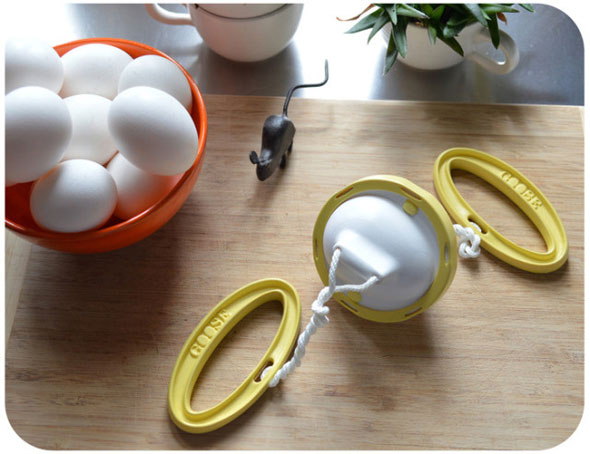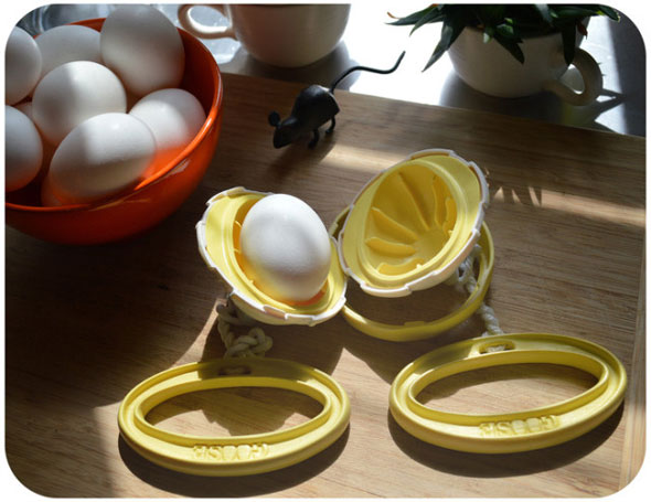 Your new favorite kitchen gadget works simply by spinning an uncooked egg around fast enough to scramble it right inside its shell. The result, after a good hard or soft-boiling, is a golden egg every time. Kinda like a certain animal that’s expected to do such a thing.