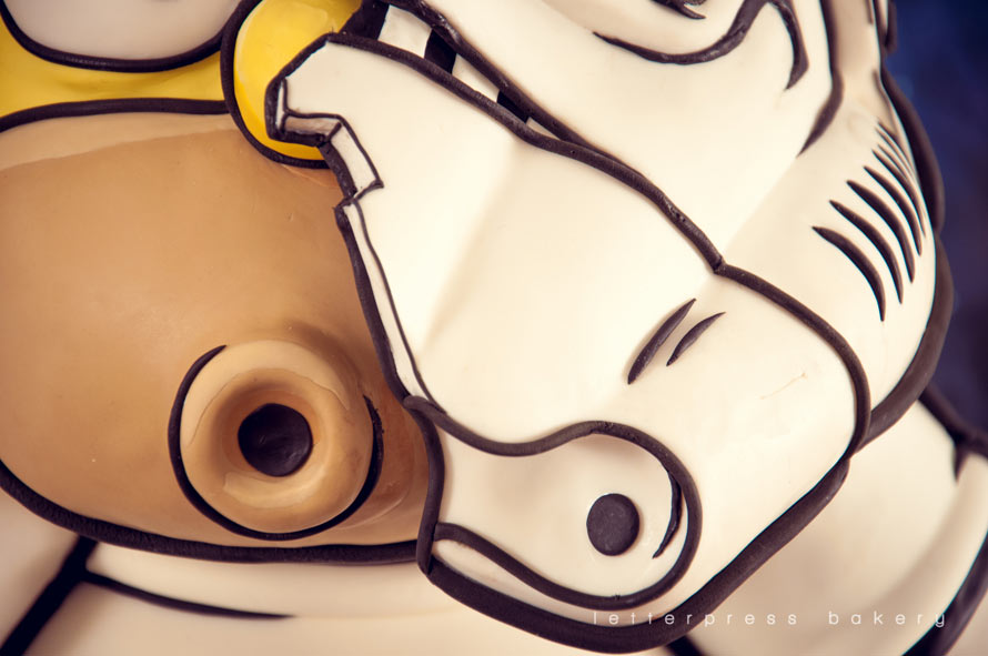 Brought to us by Kylie Mangles of Letterpress Bakery, the cake shows everyone’s favorite nuclear safety inspector, trying to disguise himself as an Imperial soldier. See the process of making the cake in the video below.