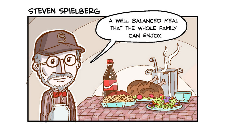 Steven Spielberg would obviously make family-friendly meals, while Tim Burton would over-cook every one of Johnny Depp’s meals. Sadly, there’s no Tarantino, who would probably serve breakfast for dinner.