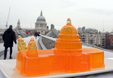 British food designers Bompas and Parr are at it again with a series of amazing and wobbly architecture made of Jell-O, or ‘Jelly’ on that side of the pond.
