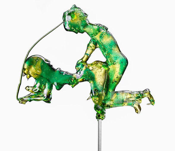 Enter, Kamasugar — a series of sugar sculptures formed into a number of sex positions. A stick is inserted [hee-hee] into the vibrantly-colored sculptures, making them the most erotic lollipops possible. NSFW lollies below.