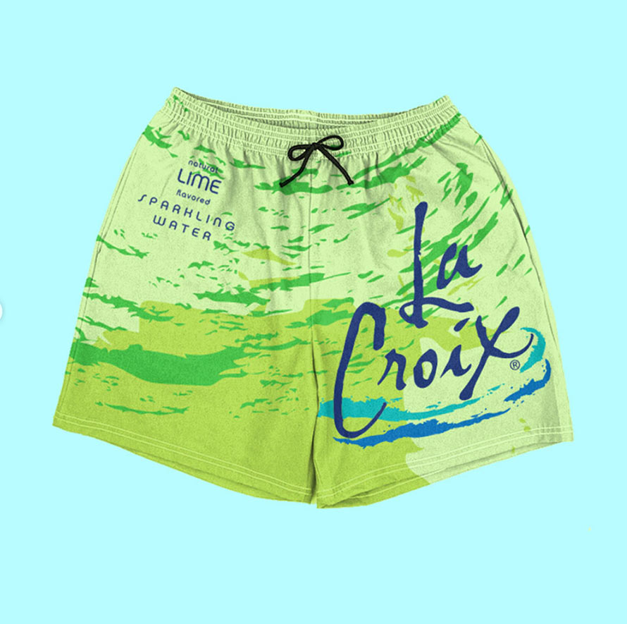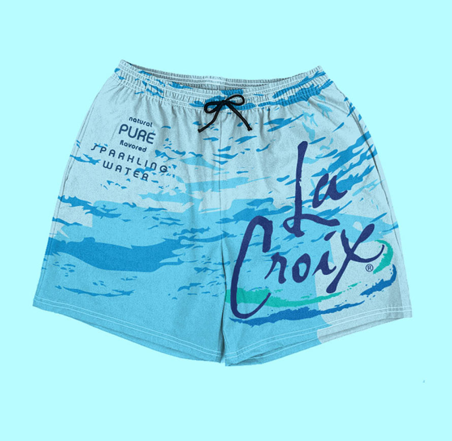 For those not familiar with La Croix, it sort of tastes like someone else ate fruit and then tried to explain what it tasted like while you sip carbonated water. And the can…. oh, that can. It looks like a rejected Dixie Cup design from 1992. Nonetheless, La Croix does make for some cool looking swimwear. Check it out here.