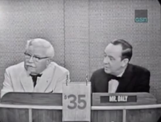 Imagine a time — before his mug appeared on greasy buckets worldwide — when the iconic Colonel Sanders was unrecognizable. Appearing on an episode of What’s My Line? in 1963, the ‘Head of the Southern Fried Chicken Company’ is questioned by the panel, until he’s forced to reveal his evil plan for worldwide fried chicken domination.