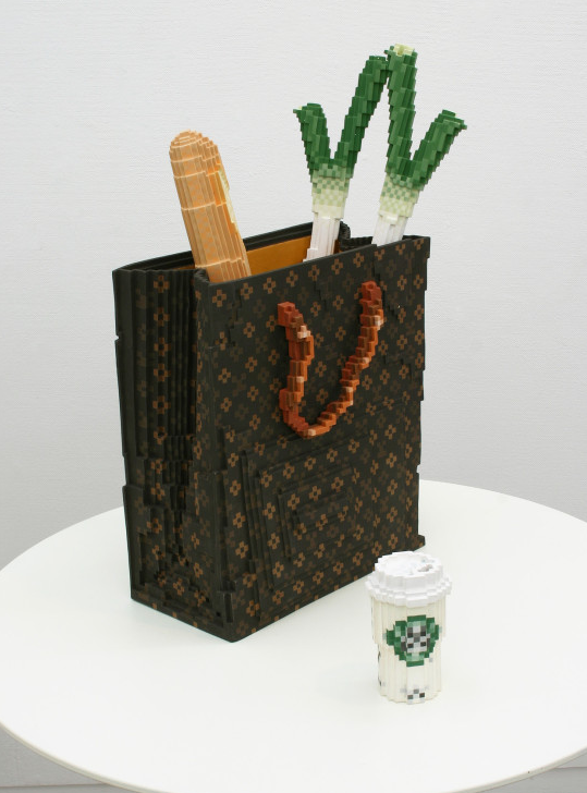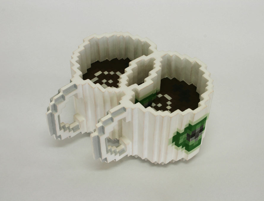 Masuda’s food and everyday objects are made from ceramic, with additional pixels painted in. Masuda refers to this merging of media as “image gap,” where the analog transitions into the digital. Check out more here.