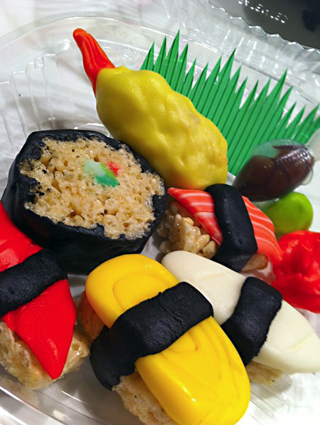 Rice Krispie Treat Sushi is brought to us by Renae Hapka of Cuteatz. Using everyone’s favorite gooey treat and creatively borrowing from Japanese culture, Renae creates the kid-friendly sushi in a variety of forms.