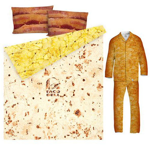 But let’s assume that Taco Bell’s A.M. Crunchwrap Bed Sheets are an actual thing. Then we would very much like a set, and want to go night-night right now.