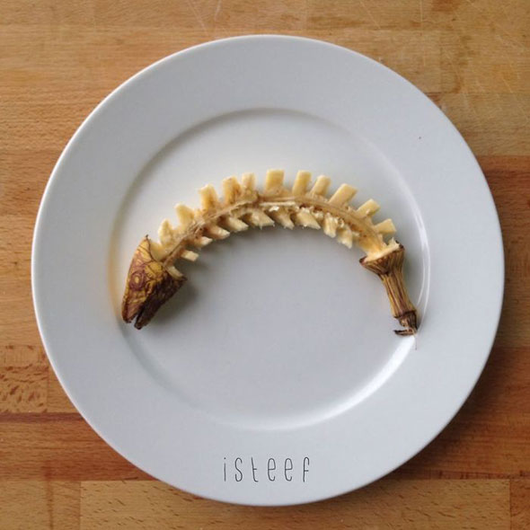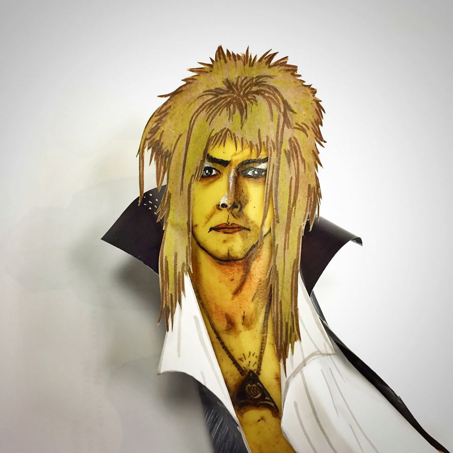 While paint and ink begin to give the banana some personality, the art really comes to life with the addition of paper and other props. Wong then peels open and eats every character, so there’s no food waste. Check out more below.