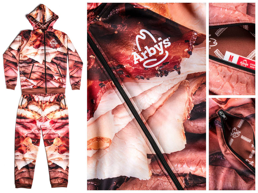 The difference is, while ingesting too much beef and pork leaves you full of saturated fat and regret, Arby’s version is a sweatsuit. And, as we all know, there are no regrets when it comes to meat-themed fashion.