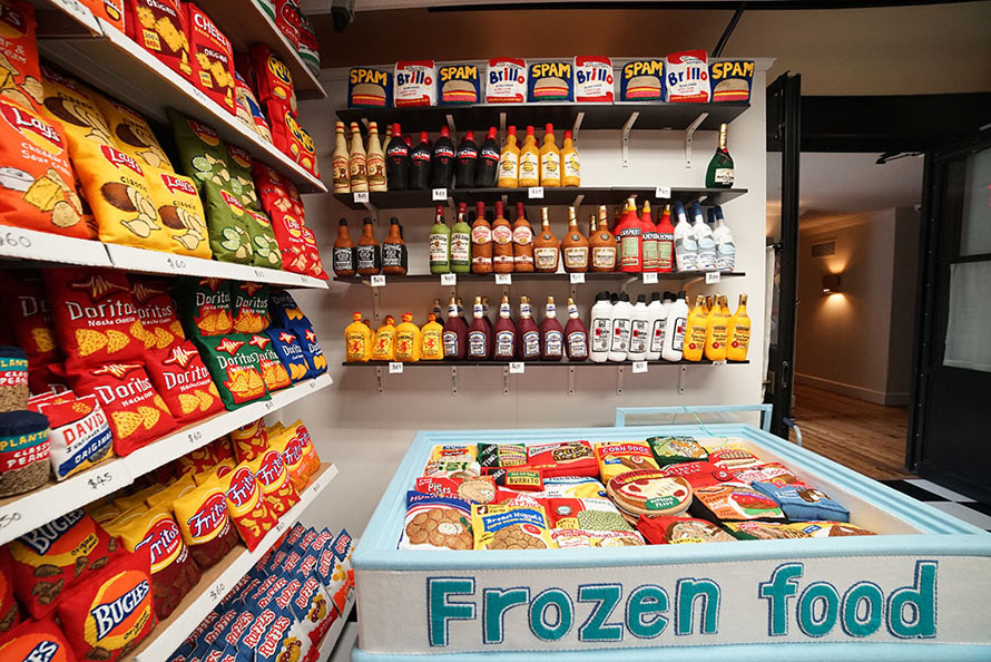 The items for sale range from Spam and Milk Duds, to laundry detergent and Tampax. The super-soft supermarket is open from August 1st-31st in the lobby of Standard Hotel in Downtown LA.