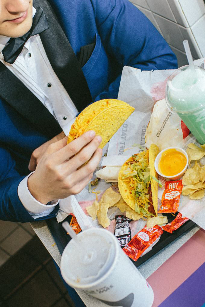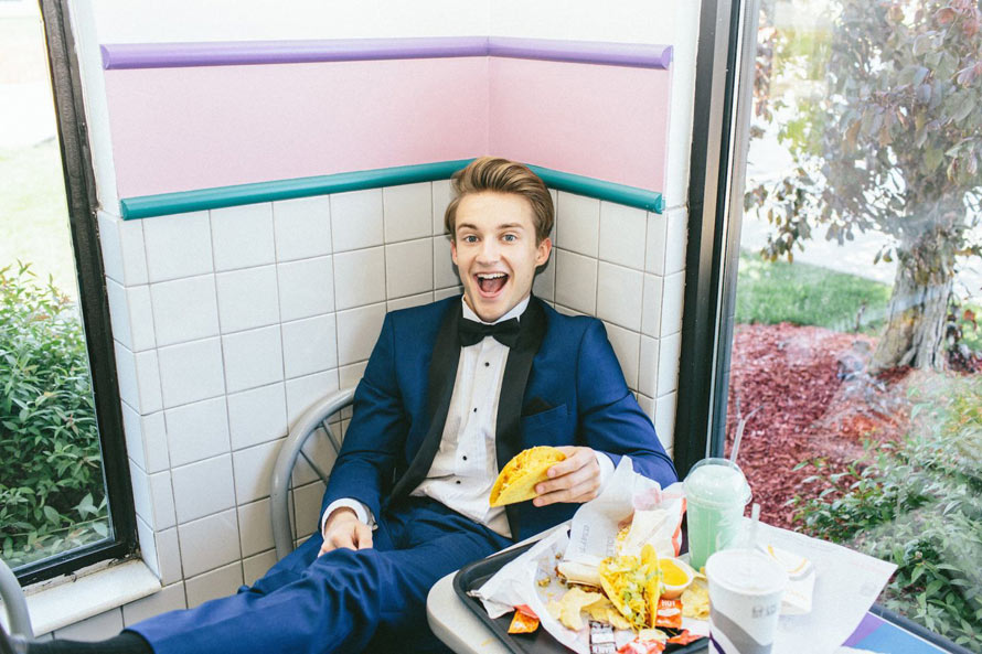 Bradley-Bourbonnais High School senior, Andrew McBurnie, recently sat down for his senior picture, but did so at his local Taco Bell. And, just in case the fast food backdrop seems a bit too casual, Andrew made it fancy with a blue tux and straight-up model poses.