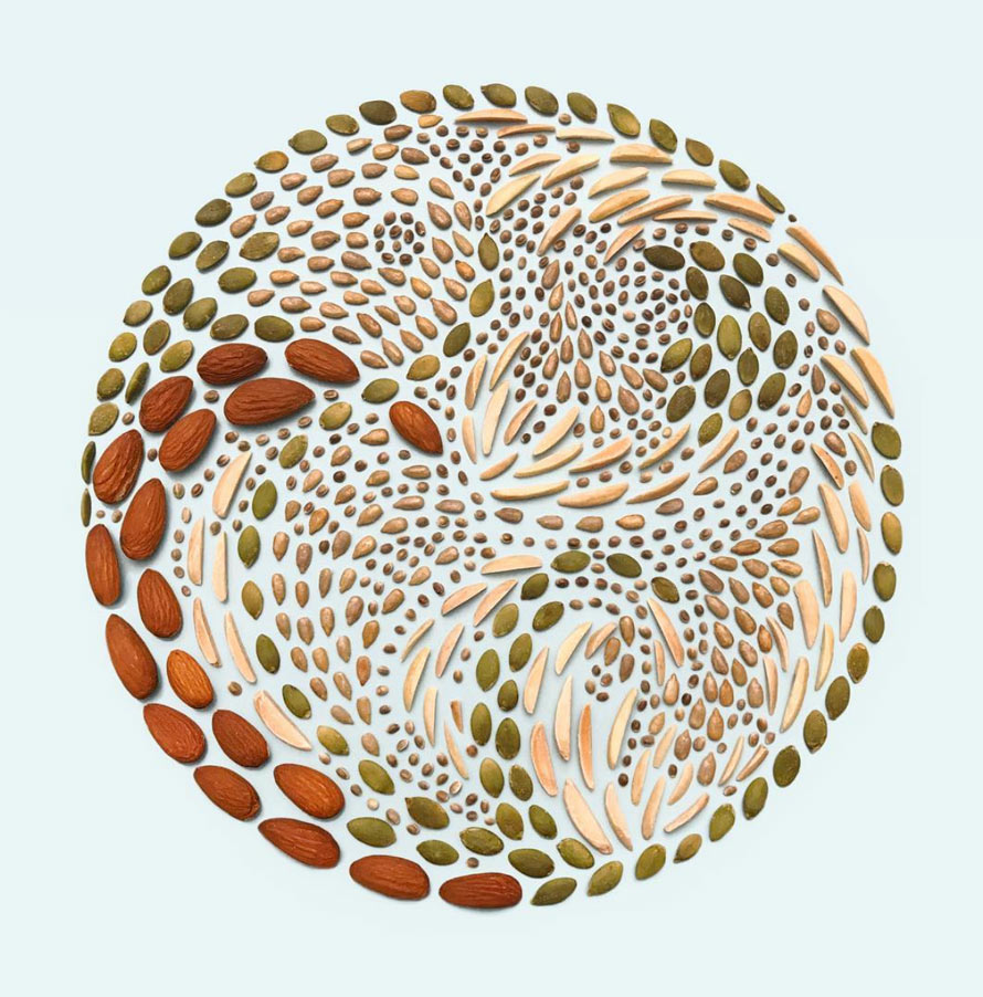For example, when given a bunch of broken crackers, Kristen puts them back together in a way that’s equal parts chaos and orderliness. Where most people see nothing more than salad ingredients, Meyer takes the opportunity to create an aesthetically-pleasing pattern that demands to be stared at.