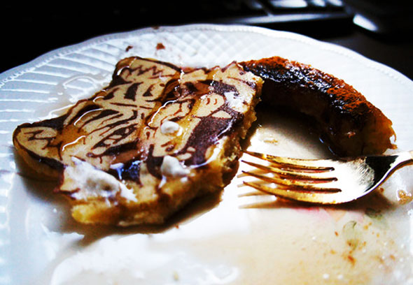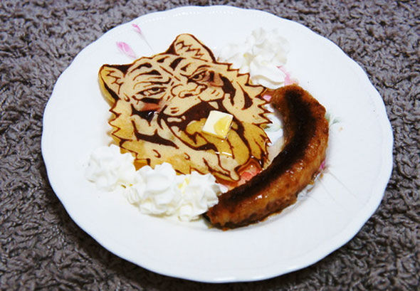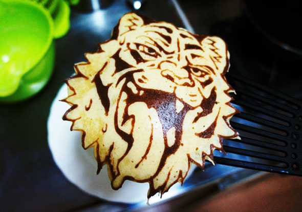 Round monochrome pancakes are so last year… Fancy illustrated pancakes are where it’s at. And, if you have a good non-stick pan and sick illustrating skills, you could have an awesome tiger pancake like this one.