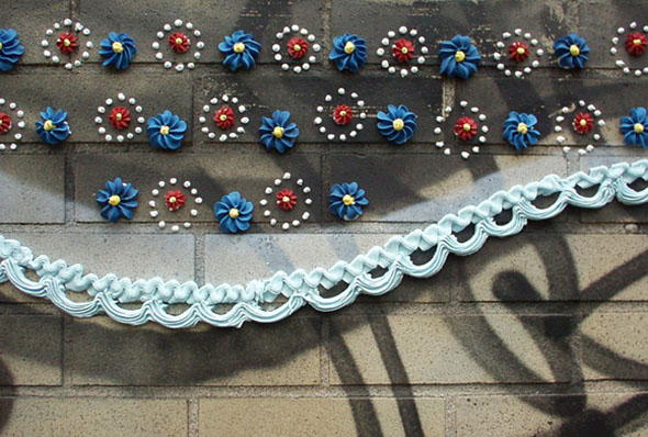 Remember, kids… Graffiti is wrong. That is of course, unless the wall art is created with delicious cake icing. Over the last few years, Montreal-based street artist Shelley Miller has enhanced a few urban settings by decorating the walls as if it was cake.