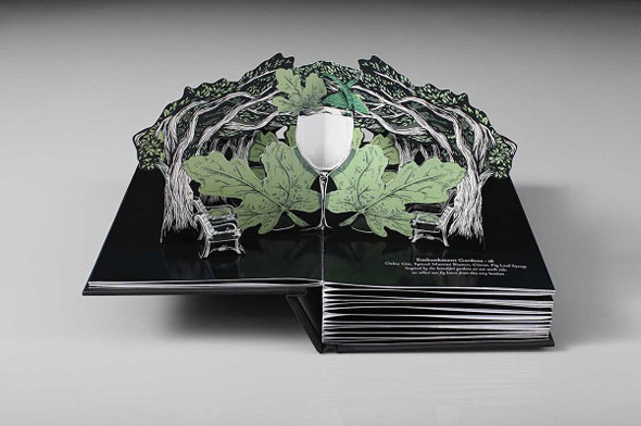 Paper engineer Helen Friel recently designed and constructed a 3-D pop-up menu for the Art Deco Beaufort Bar at London’s Savoy Hotel. Turning the page reveals an in-your-face example of each cocktail offered at the bar.