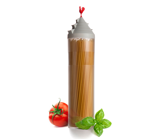 Spaghetti dispensing… A real world problem. The designers at OTOTO know this, and have brought us The Spaghetti Tower. Featuring a tapered, numbered, and multi-hinged lid — the Spaghetti Tower will not only keep your pasta fresh, but will give you the perfect amount every time.