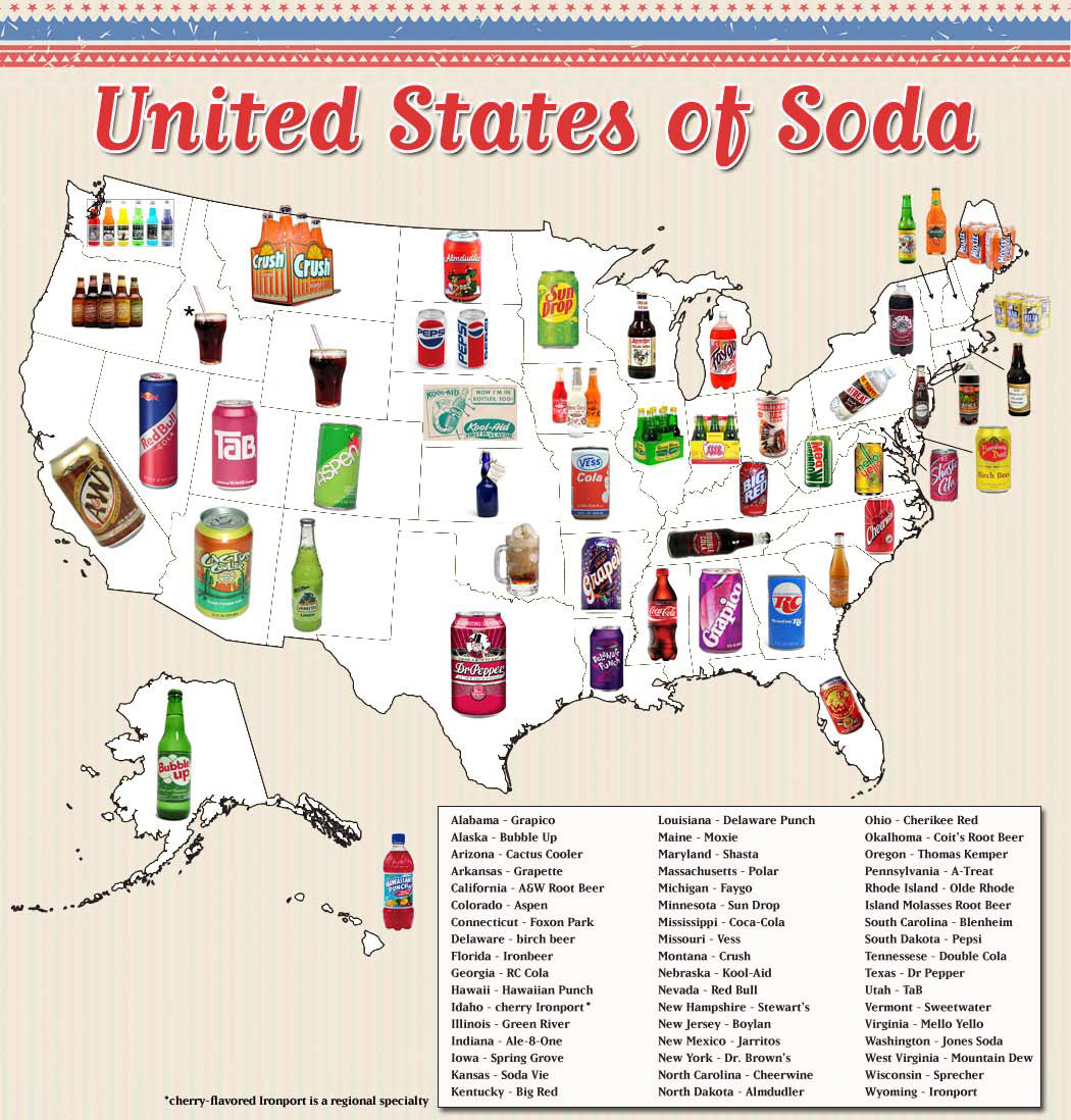 What is even more interesting in regards to the national debate over soda was a previous map, showing America’s preference for how they actually refer to their soft-drinks. So did this map get your state’s soda correct… or is it ‘pop’ in your parts?