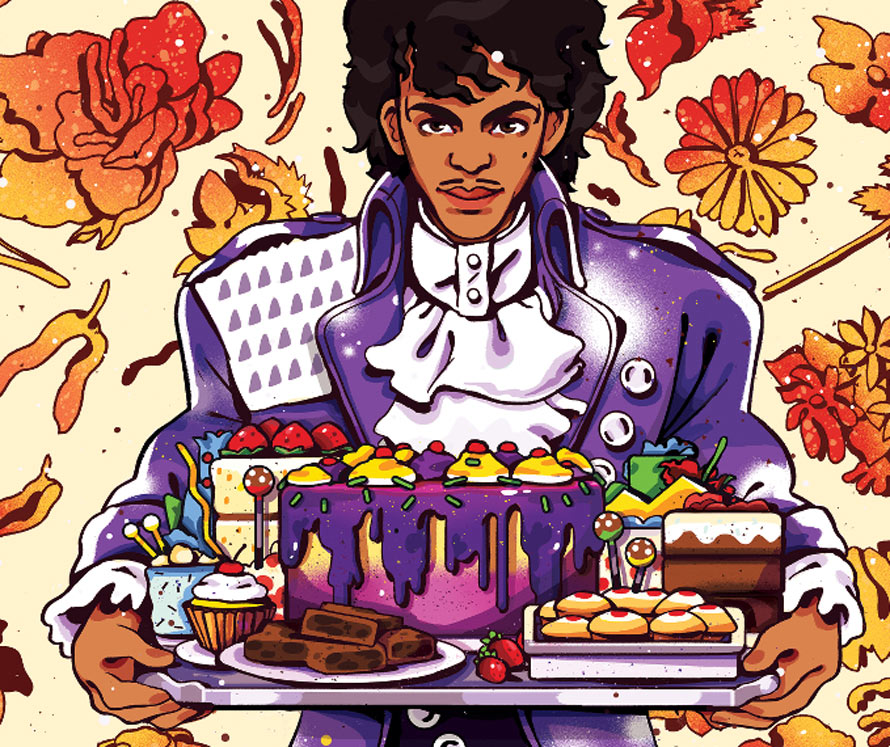 So, to honor Prince’s baking potential, there’s Little Red Velvette, The Prince Inspired Cookbook by Cat Food Cakes. Of course, there’s a Purple Rain Cake, as well as the Most Beautiful Swirl in the World, and Breakfast Can Wait.