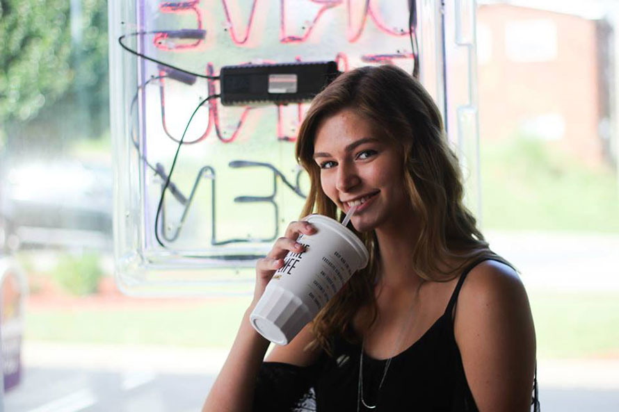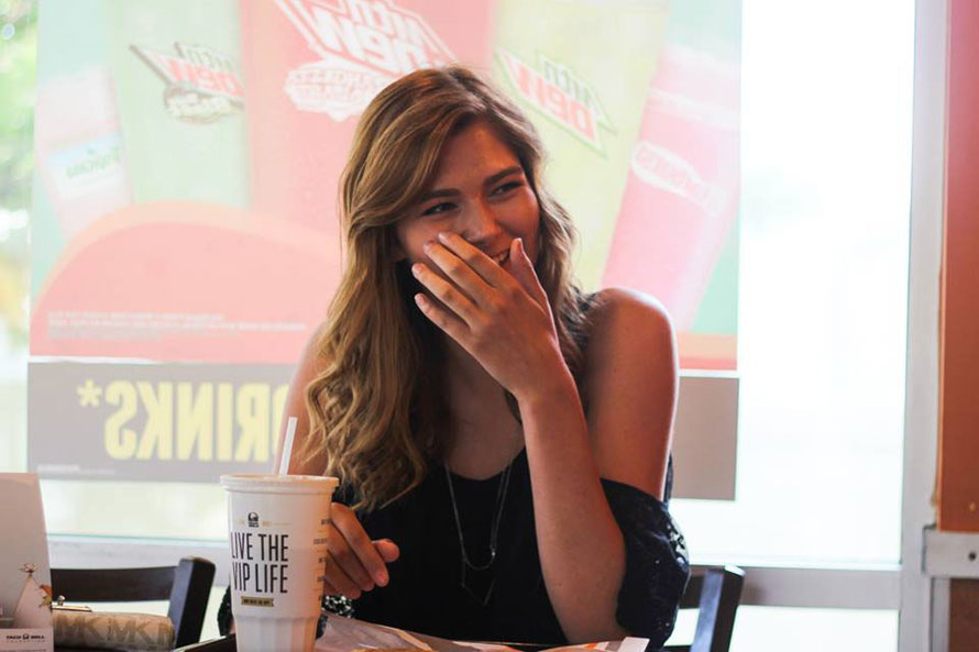 With the fast food restaurant as a backdrop, the graduating senior looks ahead to college, while posing as if she’s in an ad for the fast food chain. Which, coincidentally, is something she aspires to do. This gal is going places.