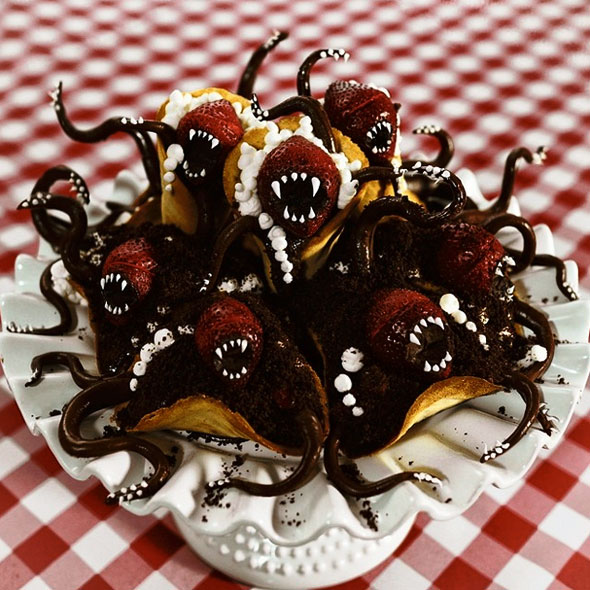 From killer waffle cones to a face hugger sugar cookies, McConnell produces desserts that would make any movie monster or serial killer proud. Christine does occasionally break away from the creepy stuff, producing dishes and cakeworks that are downright gorgeous.