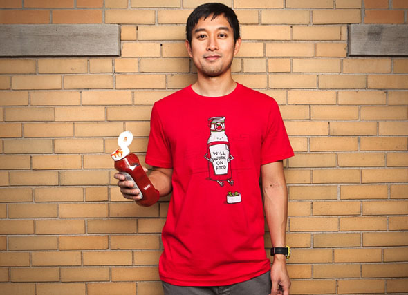 Will Work on Food is a Threadless t-shirt brought to us by artist Phil Jones. Although, it’s hard to imagine that ketchup couldn’t find work. It must be catsup.